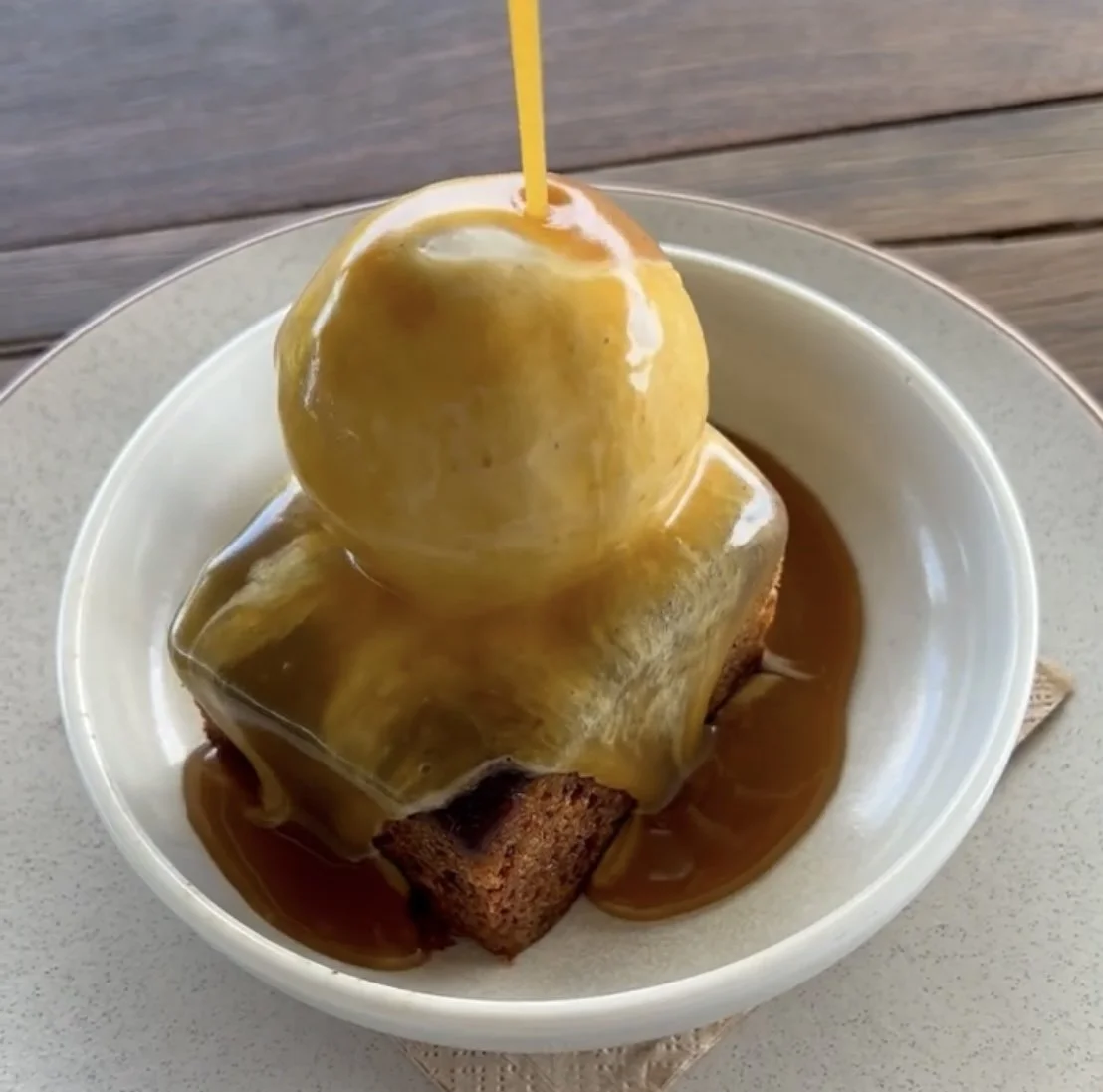 Sticky date pudding, butterscotch sauce, vanilla ice cream